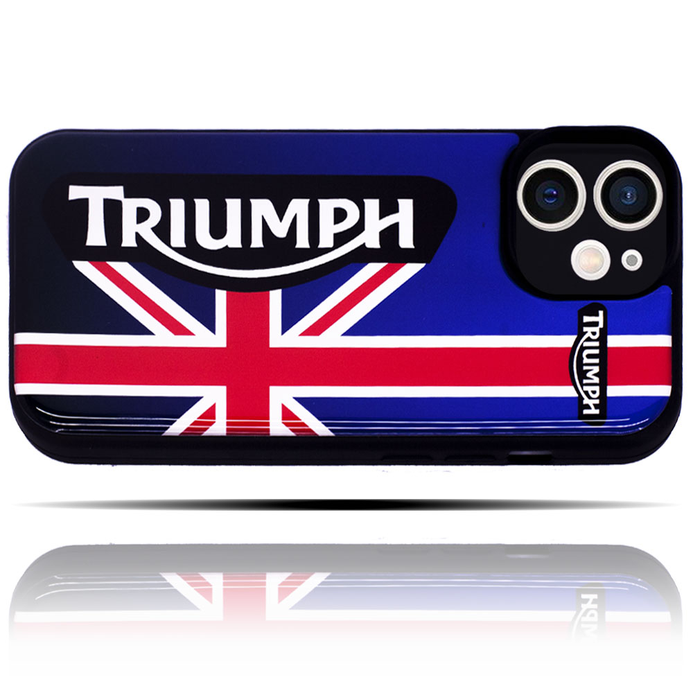 Triumph tutkunları için özel olarak tasarlanmış bu kılıf, iPhone'unuzla mükemmel uyum sağlar ve stilinize benzersiz bir İngiliz dokunuşu katar. Kılıfın silikon gövdesi ve poliüretan arka tasarımı, darbeleri emerek telefonunuzu güvenle korurken şıklığından ödün vermez.