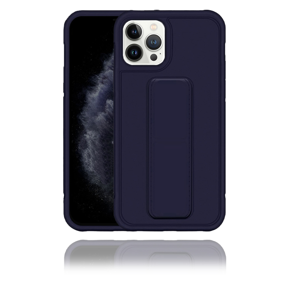 Apple IPhone 13 Pro Uyumlu Mat Lacivert Yumuşak Silikon Standlı Tutacaklı (Tutamaçlı) Telefon Kılıfı