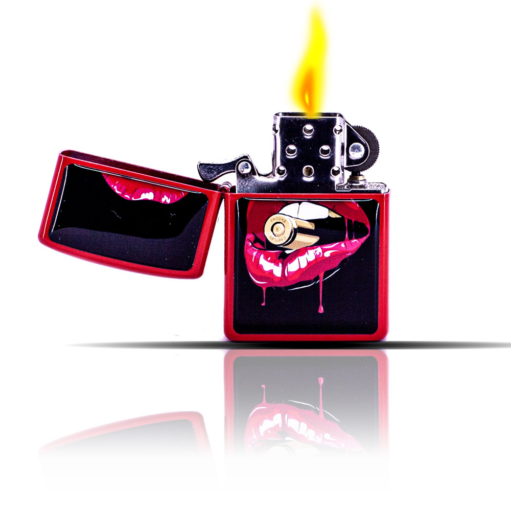 Dudak ve Kurşun Desenli Kırmızı Zippo Tarzı Benzinli Çakmak: Klasik ve Şık Tasarımın Buluştuğu Nokta