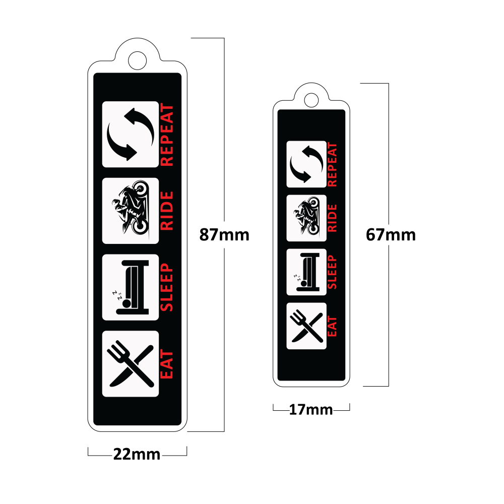 Eat-Sleep-Ride-Repeat Poliüretan Damla Anahtarlık (2 Adet) – Motosiklet Yaşam Tarzını Yansıtan Özel Tasarım