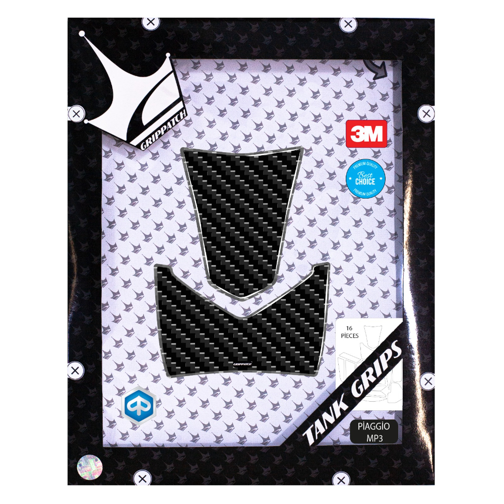 Piaggio MP3 modellerine özel tasarlanmış 6D karbon dokulu ve kaydırmaz yüzeye sahip 16 parçalık tank pad seti. Boya ve plastik yüzeyleri çizilmelere, sürtünmeye ve günlük yıpranmaya karşı korur; aynı zamanda scooterınıza premium bir görünüm kazandırır.
