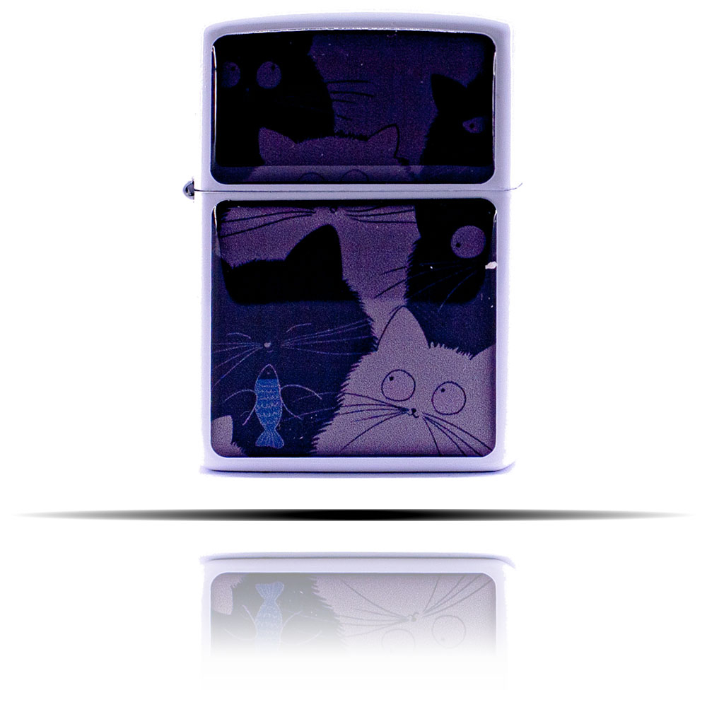 Kedi Desenli Beyaz Zippo Tarzı Benzinli Çakmak: Klasik ve Şık Tasarımın Buluştuğu Nokta