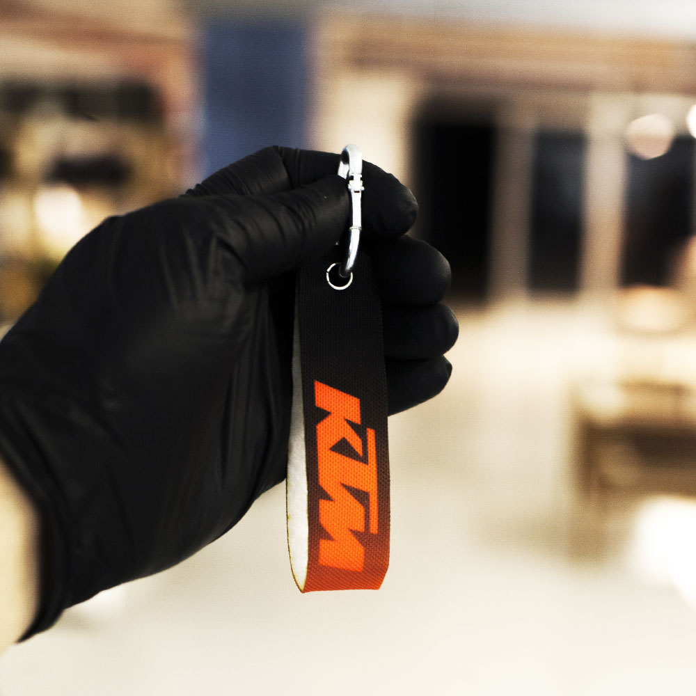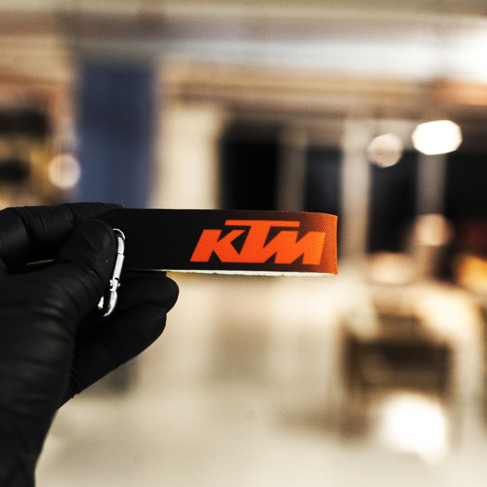 KTM Turuncu Logolu Siyah Turuncu Kumaş Şerit Anahtarlık Ürün Açıklaması